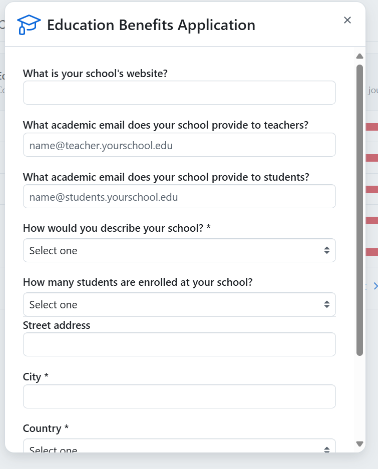 - What academic email does your school provide to teachers 如果前面的role选择是Teacher且有edu邮箱可以写